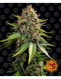 White Widow je bezesporu sen každého sběratele. Lety prověřená a stabilní genetika, ze 70% Indica dominantní hybrid. Tomu odpovídá i morfologie s nízkými rozestupy mezi veg. patry. V kontrolovaném prostředí dosahuje odrůda 80-90 cm. Ve volné přirodě může dosahovat cca 100-120 cm. Můžeme prozradit jeden z důvodů, proč dostala jméno White Widow. Sama o sobě má odrůda krásné tmavě zelené listy. V pozdních fázích květu dochází k zajímavému úkazu. Celá plocha listů, které mají to štěstí být nejblíže květům, se stane kompletně posetou vrstvou poctivě vyprodukovaných trichomů. Bohaté trichomy vytvářejí na květenstvích kompaktní bílý závoj, tak jakoby měla závoj nevěsty. Po patřičném dvoufázovém otestování došel šlechtitel k překvapivému názoru. Tohle není nevěsta, tohle je vdova ;-)) . Životní cyklus samonakvétacích odrůd se počítá na pouhé týdny, v tomto případě na 10-11 týdnů. Odolnost White Widow je pověstná, proto se hodí do jakýchkoliv klimatických podmínek.