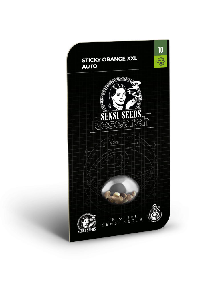 Sticky Orange XXL Auto spojuje old school a new school. Magické spojení 4 odrůd vyústilo v tuhle krásku co slepí všechny prsty dohromady. Díky Sensi Seeds si můžete vyzkoušet ideální kombinaci genů, která z Vás udělá velmi spokojeného sběratele. Perfektní odrůda pro začátečníky, protože díky svým nízkým nárokům nepotřebuje žádnou extra péči. Je až k neuvěření, jak je tahle odrůda houževnatá a dokáže vytvořit více než uspokojivý výsledek v každém podnebném pásu. Samonakvétací / automatic odrůda s XXL potenciálem a dominancí Indica, která si vypůjčila ze sativní linie pouze část voňavoučkého terpenového profilu.