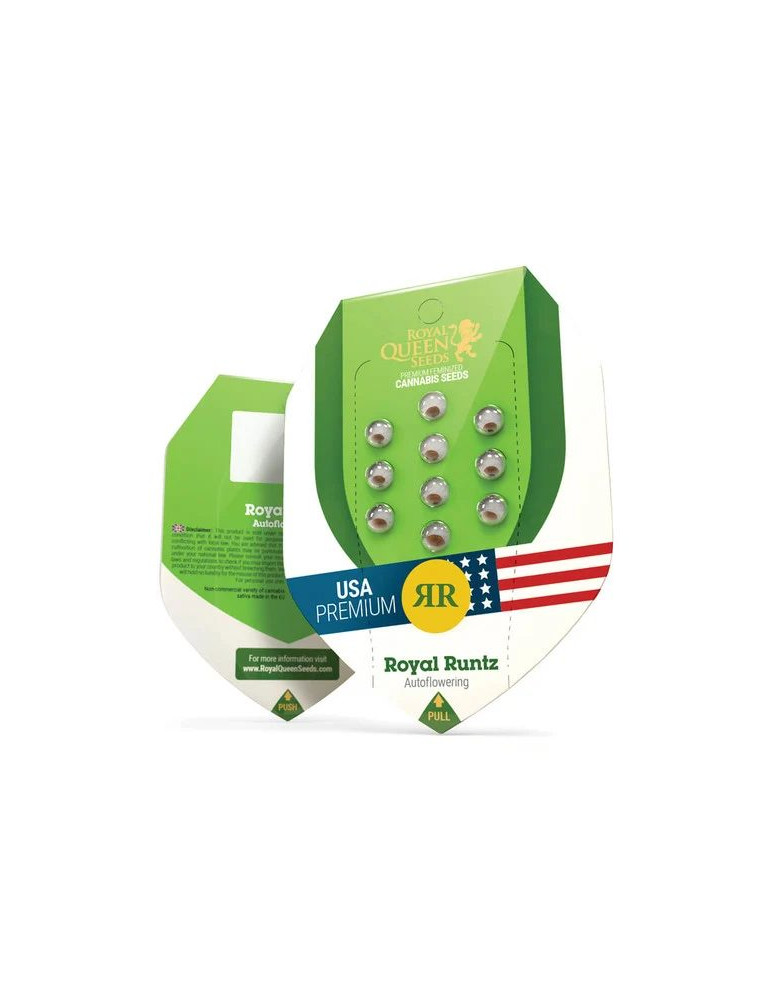 Royal Runtz Auto je samonakvétací odrůda určená pro pěstitele, kteří hledají spojení výrazného chuťového profilu, svižného vývoje a univerzálního využití. Vznikla propojením původní odrůdy Royal Runtz s ruderalis, díky čemuž si zachovává atraktivní charakter původní genetiky a zároveň přidává praktičnost samonakvétacího růstu.